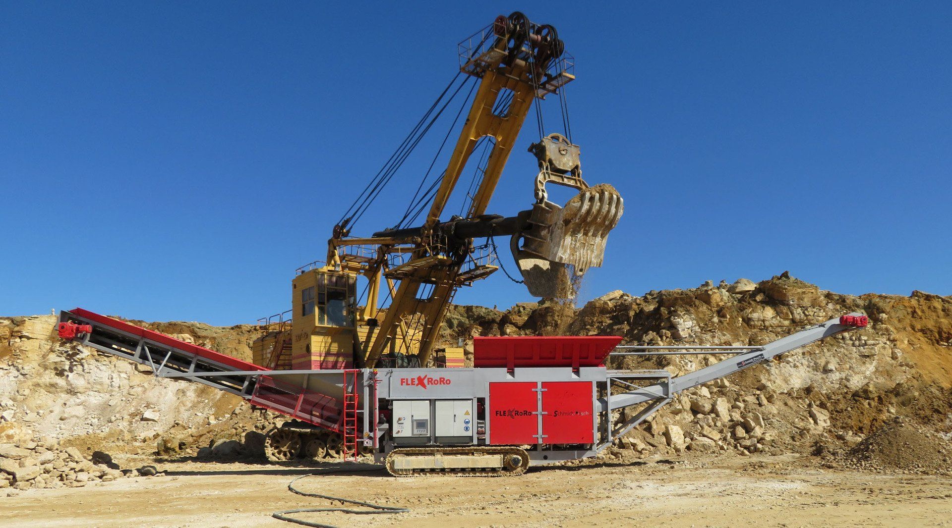 FlexRoRo for screening and cleaning clay-containing rock. Feed max. 1,800 mm separating grain 30 to 150 mm